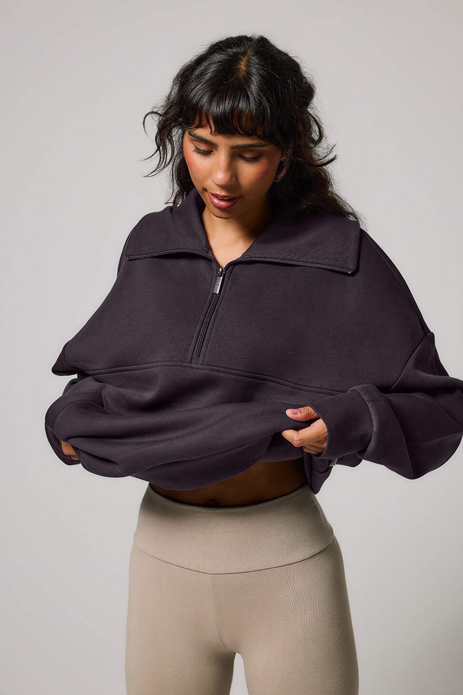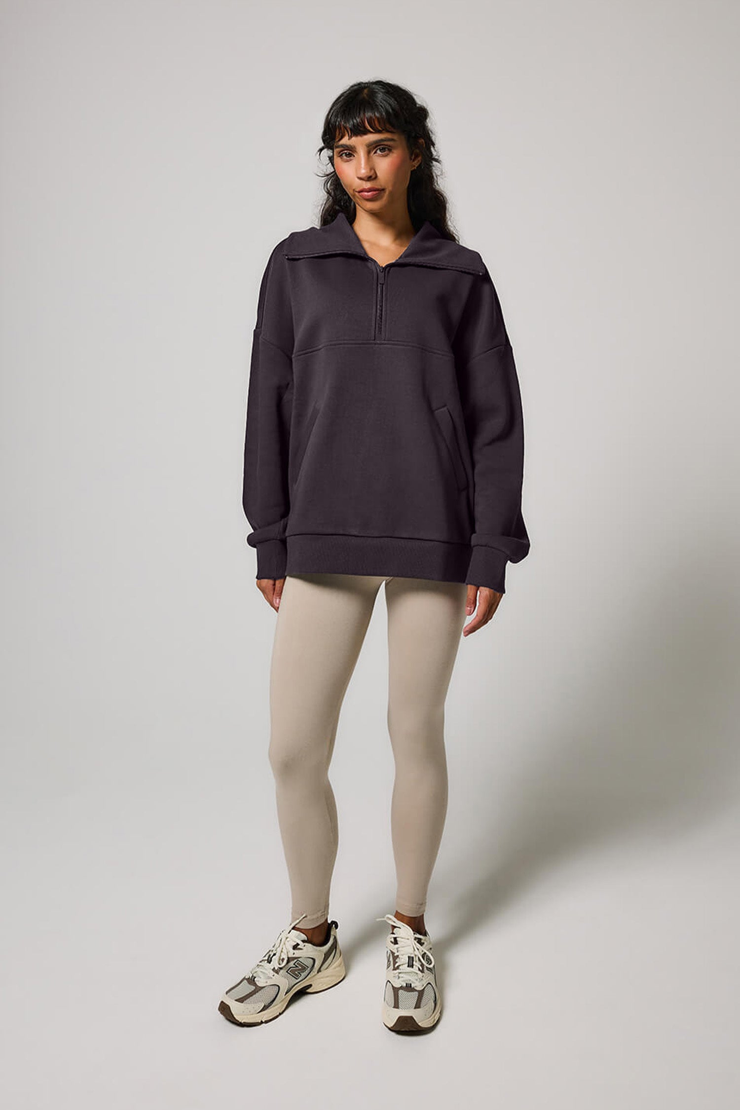 Embrace sustainable comfort with the TerraFleece Sweatshirt, crafted from ultra-soft organic and recycled fibers for eco-conscious style. Designed with a relaxed oversized fit and drop-shoulder silhouette, this quarter-zip top blends modern aesthetics with cozy functionality. The plush fleece lining ensures warmth during chilly days, while the ribbed collar and welt pockets add practicality and polish. Perfect for layering in Shadow Grey, it transitions effortlessly from brisk morning walks to casual evenings, offering year-round versatility.